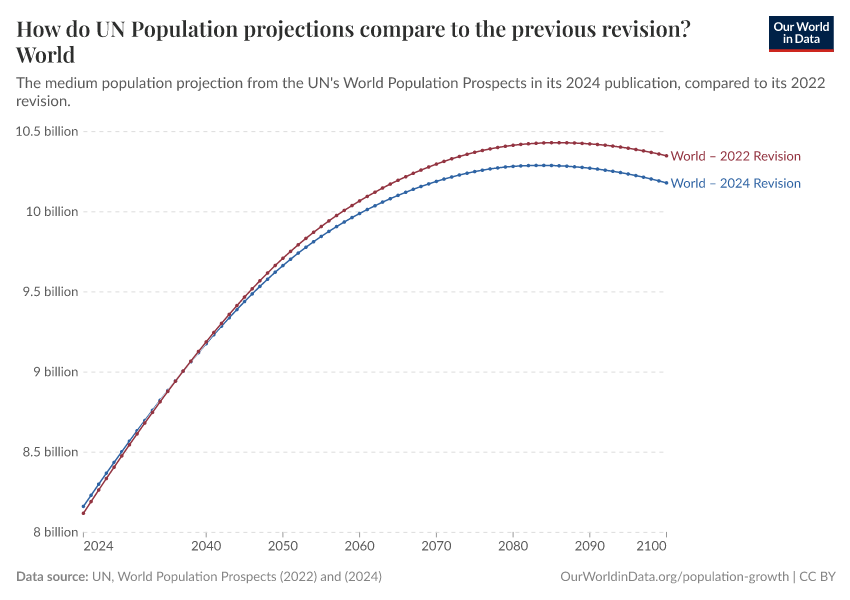 This year’s edition brings this peak forward slightly to 2084, with the population topping at just under 10.3 billion.